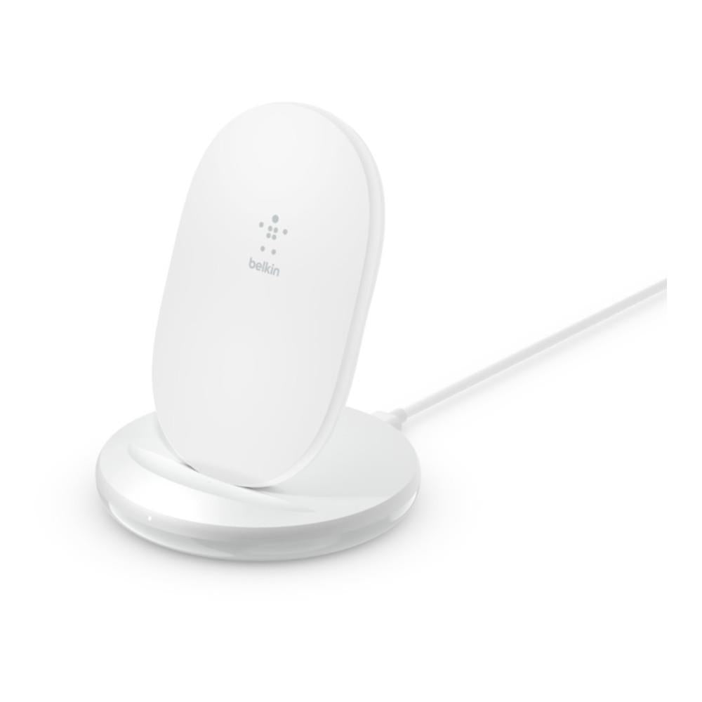 Declutter your desk or countertop by replacing all those wires with the Belkin wireless charging stand. This slim, compact charger delivers 15W of power to your Apple or Android phone. Even better, you can charge in portrait or landscape mode so you can keep streaming video or read a recipe while your phone powers up. Compatible with most phone cases and Qi-certified for safety, the charger also features an LED indicator light that lets you know your phone is getting a proper charge. Simplify charging and streamline your life with a 15W charger that compliments any decor. Quick Charge 3.0 power supply unit and 2-year warranty included.