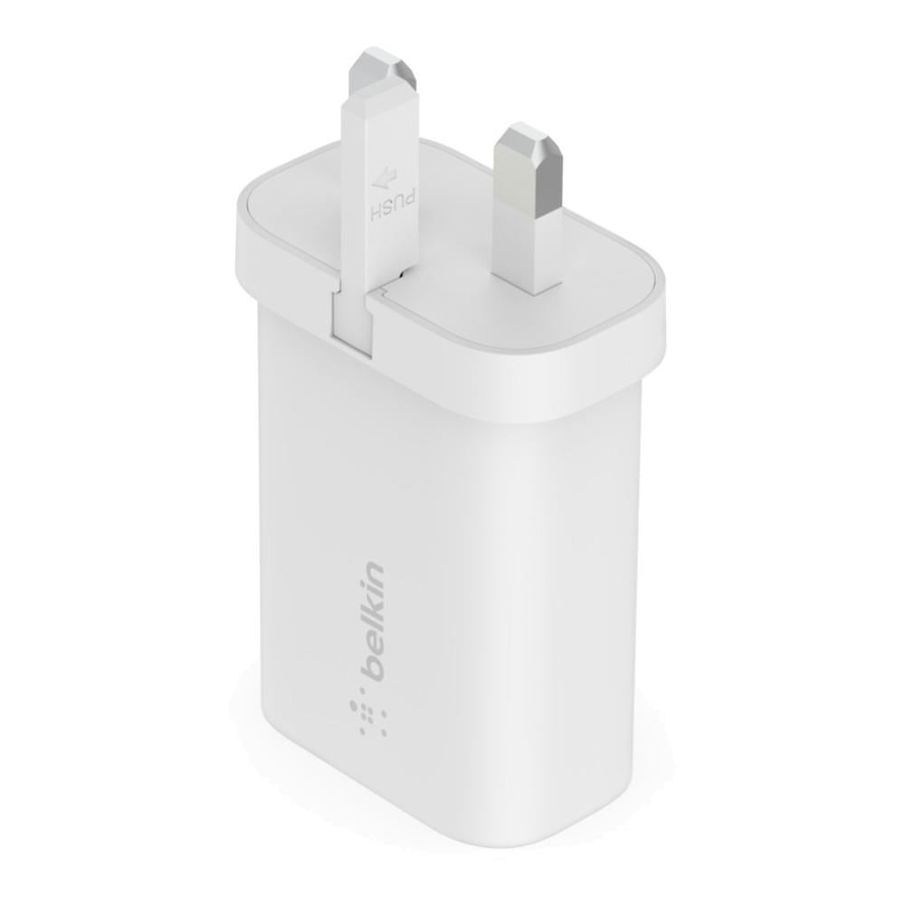 Charge your smartphone from 0-50% in 30 minutes with the Belkin 25W USB-C PD 3.0 PPS Wall Charger. Upgrade your standard in-box power supply with a universal USB-C PD 3.0 certified charger that gives an optimal charge for newer iPhone and Samsung models in a compact and travel-ready design. Equipped with PPS technology which allows optimized charging with compatible devices by dynamically negotiating the best charging voltage, delivering up to 25W for Samsung smartphones and 20W for iPhone.