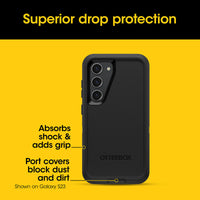 Legendary durable Galaxy S24 case, Defender Series, with a multi-layer construction guards your device from serious drops, dirt, scrapes and bumps. Wireless ready, it works with Qi charging. Plus, the included holster does double duty as a belt clip or hands-free kickstand.