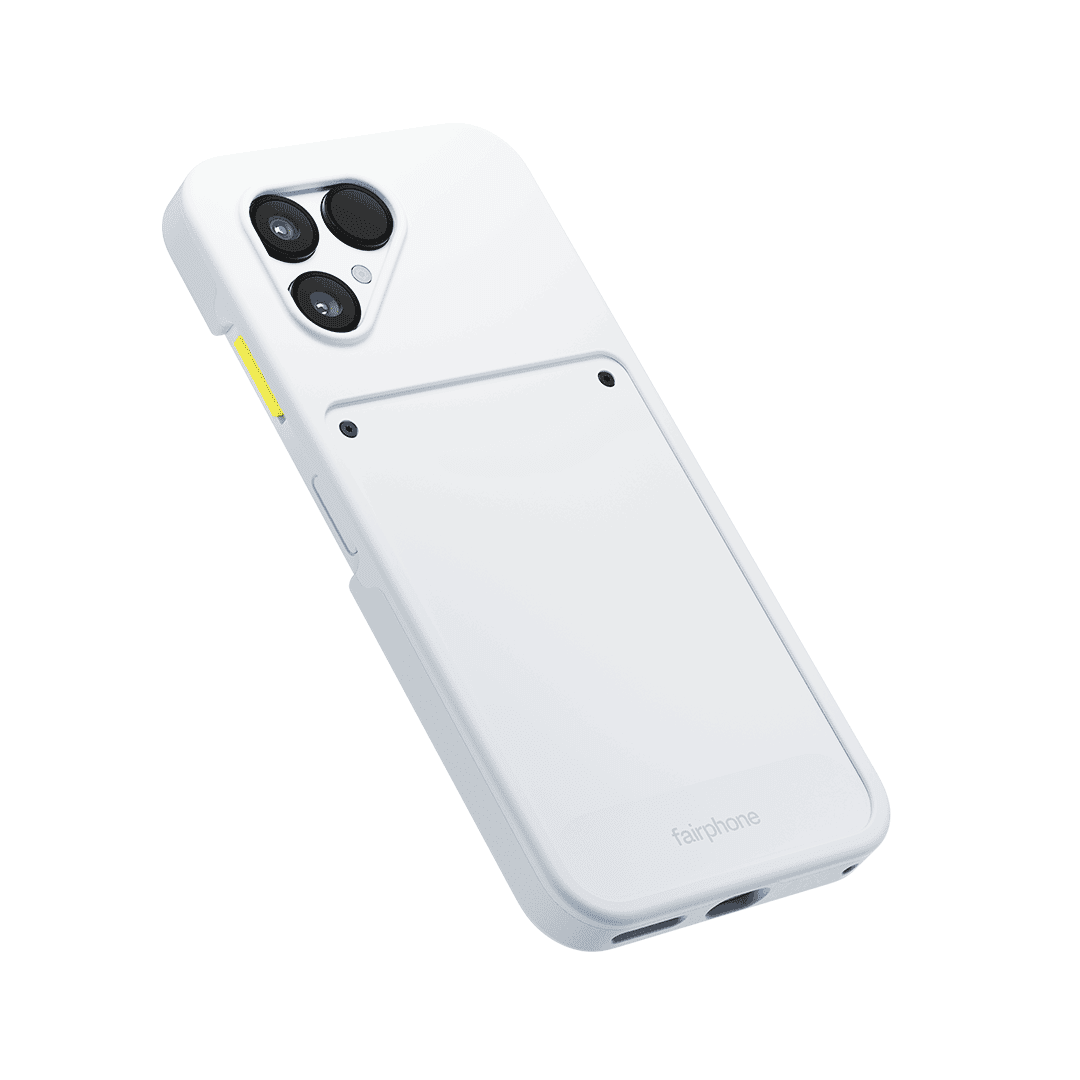 Works perfectly with the Fairphone (Gen. 6) cardholder, finger loop, and/or lanyard.