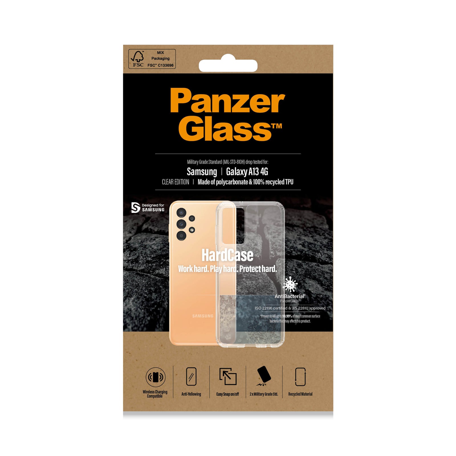 Life is a contact sport. Protect your phone from bumps and bruises of everyday life with the PanzerGlass™ HardCase. Simply snap it on and you’re ready to go. The HardCase features a stiff, transparent back cover surrounded by a softer TPU frame. This combination of materials provides a high-level scratch and impact resistance. And to top it all off, the case is anti-yellowing so it will continue to look good, day after day – even with heavy use. The HardCase also provides an extra level of protection from germs and bacteria by featuring an innovative anti-bacterial coating that is proven to kill up to 99.99% of the most common surface bacteria. Combine the HardCase with a PanzerGlass™ screen protector for full 360-degree protection.