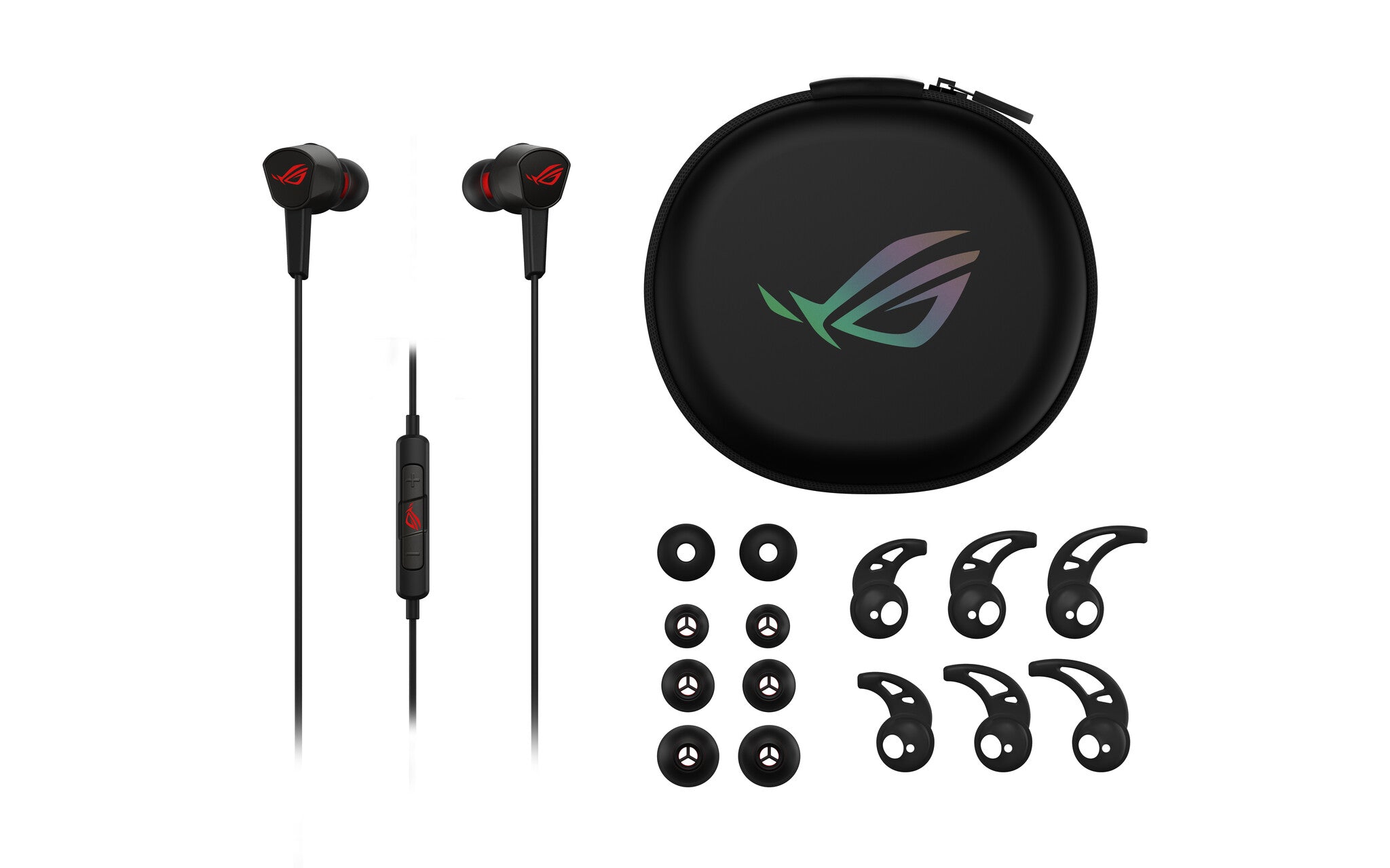 ROG Cetra II Core comes with a compact travel case for easy storage when taking it on the go. Three sizes of LSR ear tips and ear fins, plus a pair of foam ear tips, are included ― so you’re sure to get a fit that's comfortable and secure.