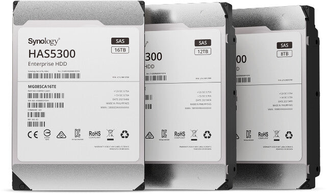Unmatched integration with DSM and Synology hardware enable HAS5300 SAS hard drives to reliably deliver class-leading performance in enterprise deployments. HAS5300 drives have passed 200,000 hours of rigorous testing on Synology hardware, feature a 2.5M-hour MTTF, and are covered by Synology’s 5-year limited warranty.