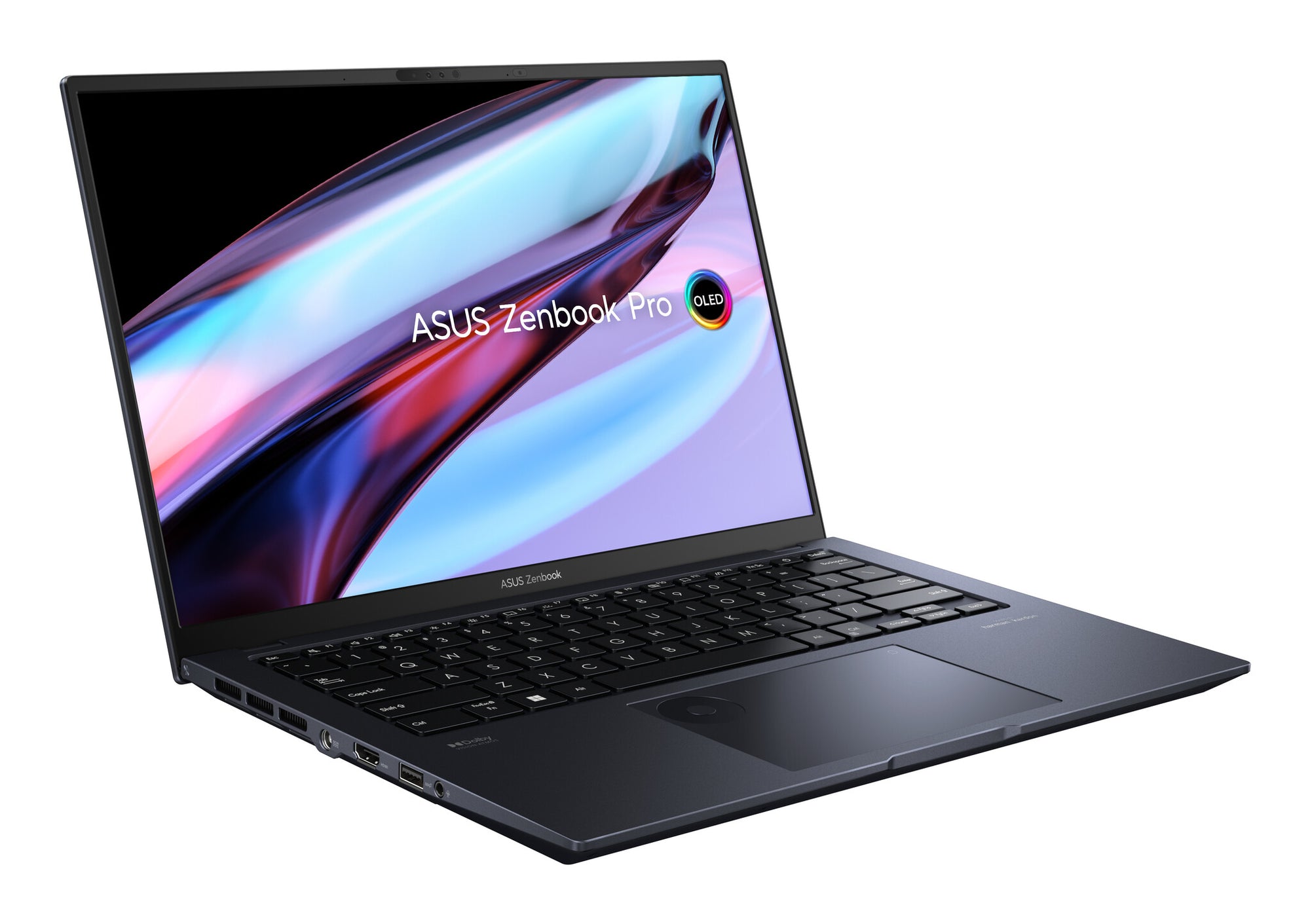 For unrivaled audio quality, Zenbook Pro 14 OLED has a stereo sound system certified by the audio experts at Harman Kardon. It delivers powerful, immersive sound that’s crystal-clear. The immersive Dolby Atmos® technology indulges you in your favorite entertainment with sound that moves all around you, adding breathtaking realism to music, movies and TV.