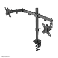 The Neomounts desk mount, model FPMA-D550DBLACK is a tilt-, swivel and rotatable desk mount for 2 flat screens up to 32". This mount is a great choice for space saving placement on desks using a desk clamp or grommet mount.