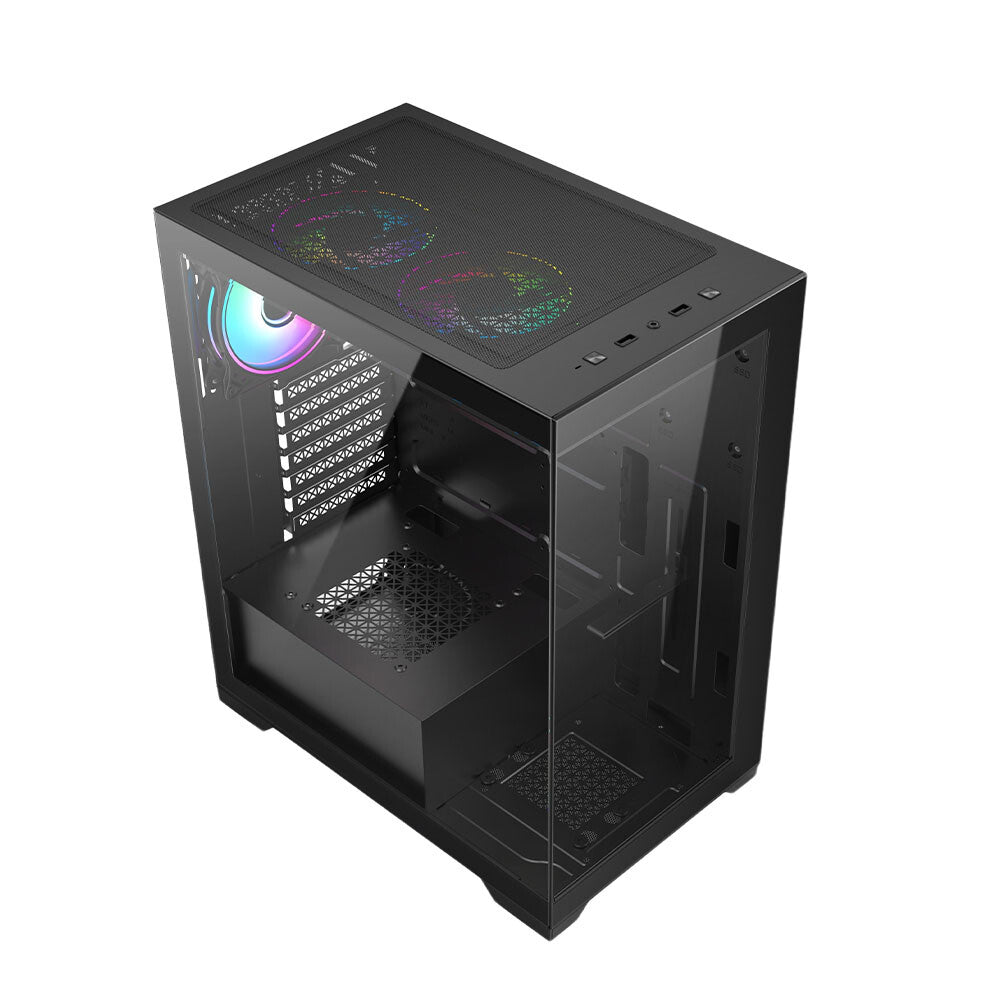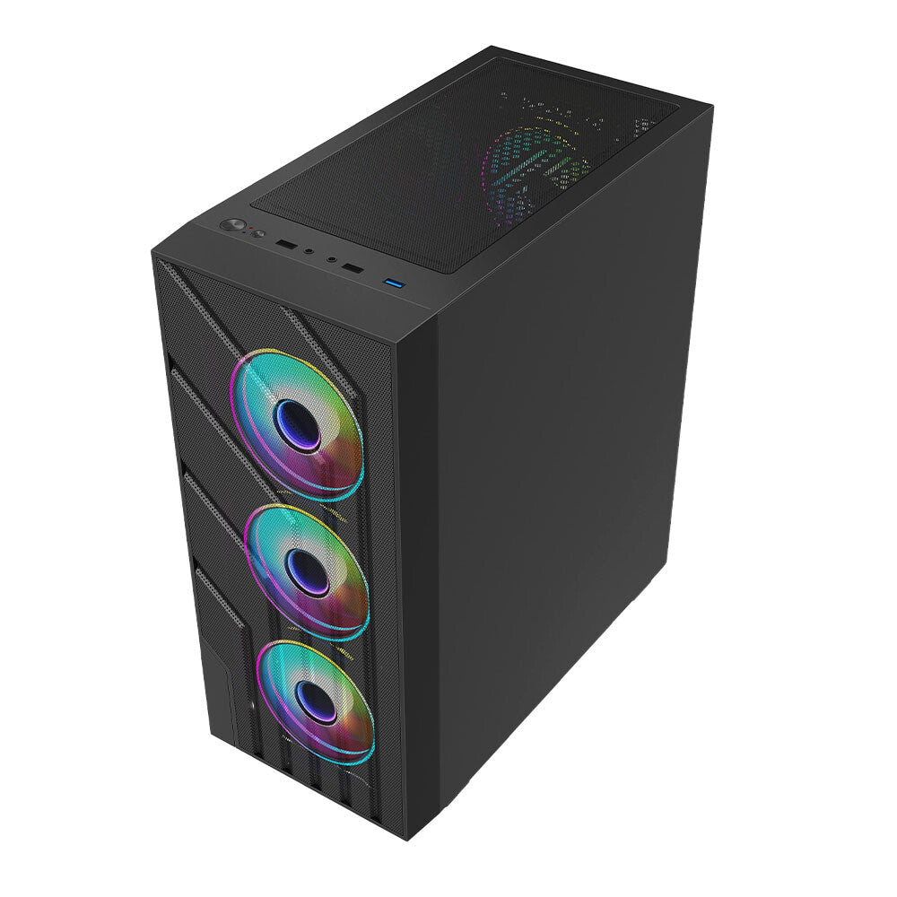 Perforated front and top panels direct filtered air through the case to cool down components and enhance performance.