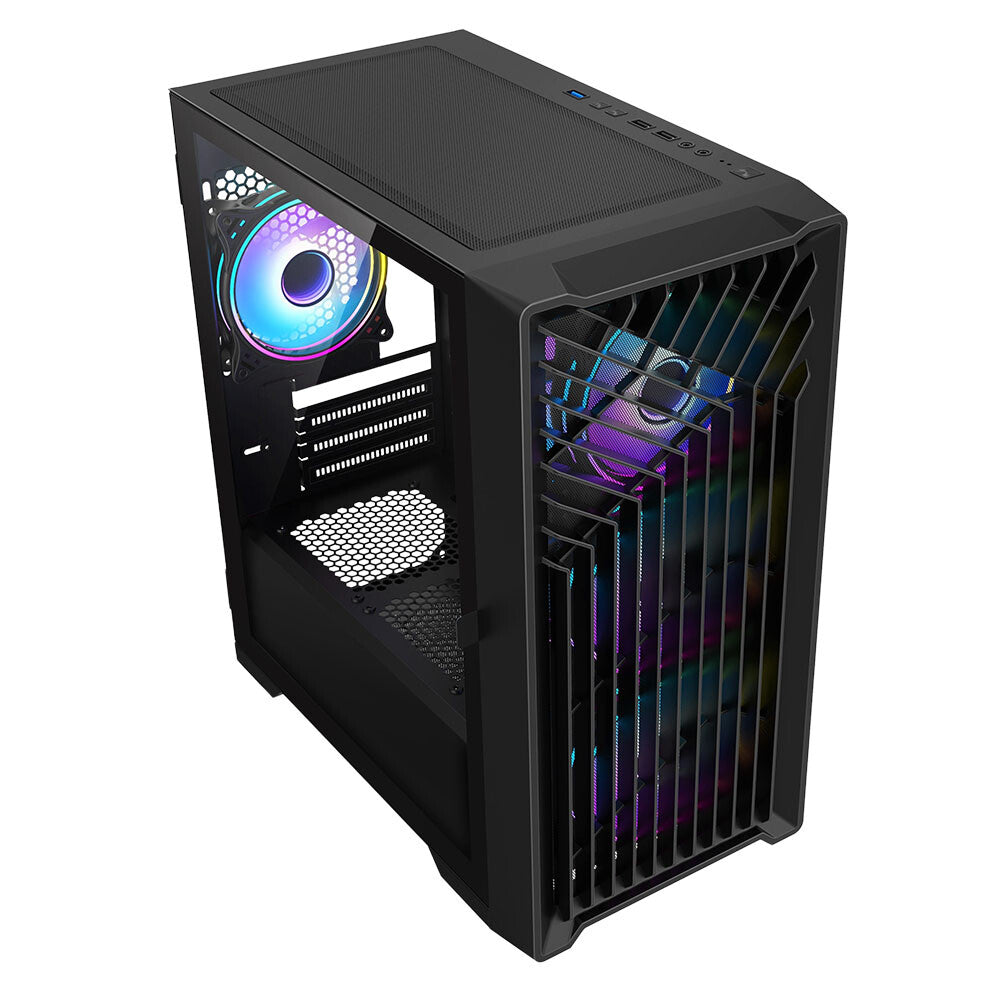 An angled 120mm fan draws air from below the case to provide direct cooling for your power-hungry graphics card. (Includes two 120mm case fans)