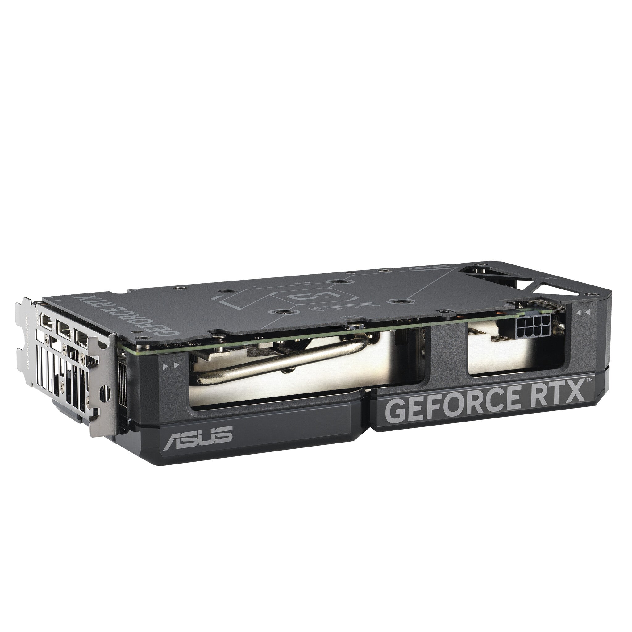 A carefully designed shroud, heatsink, and heatpipe layout allows the two Axial-tech fans to leverage chassis side-panel ventilation and deliver thermal performance that belies the card’s size.
